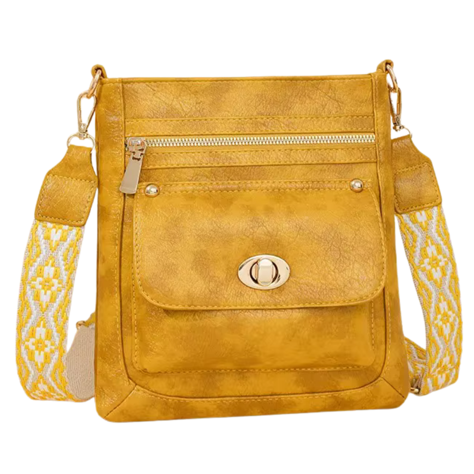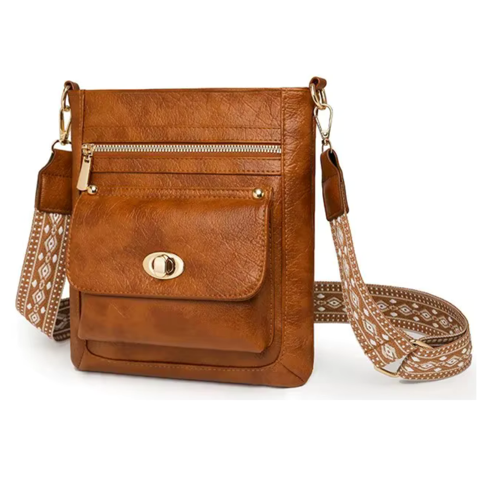 Brede designer-strap — verstelbaar voor crossbody of shoulder wear.